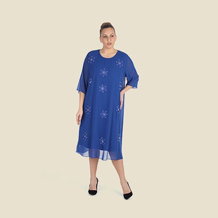 Mavi İşlemeli Elbise